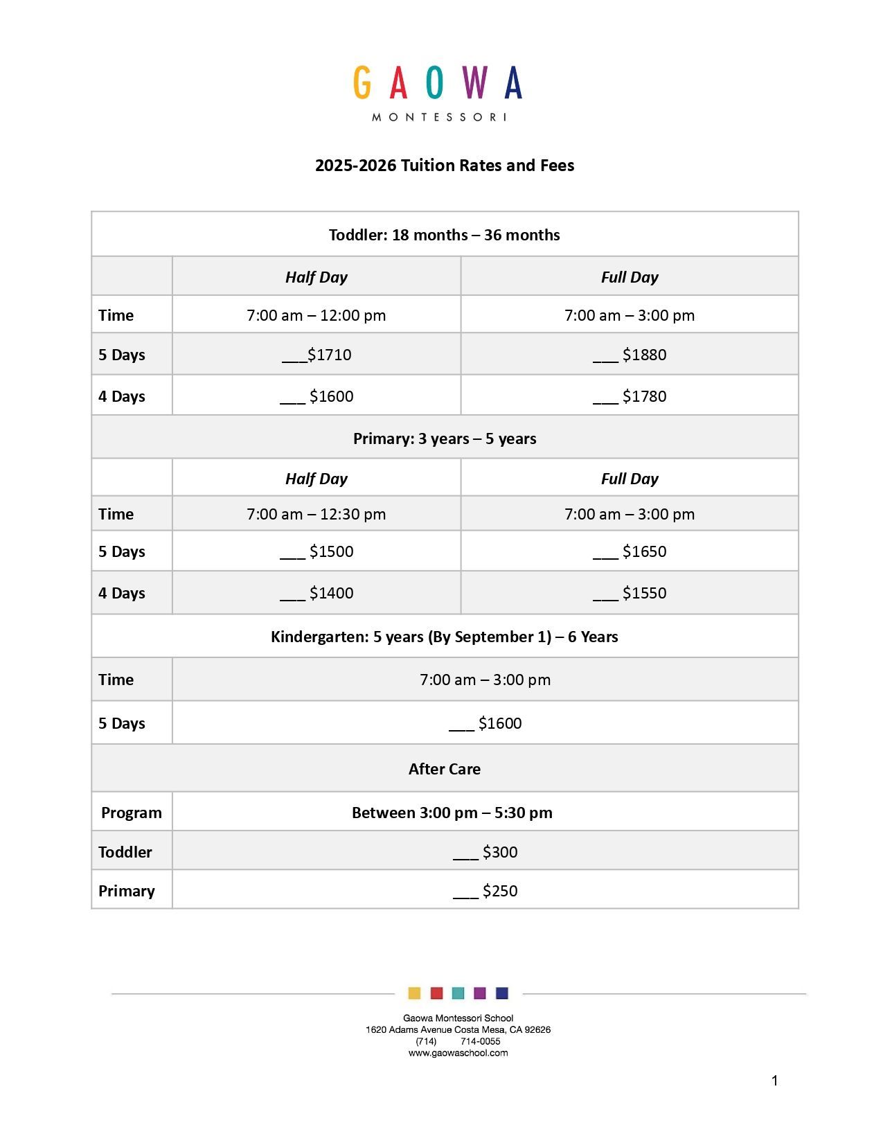 If you're interested in enrolling, please give us a call at (714) 714 - 0055 to schedule a tour. We would love for your child to join the Gaowa family!